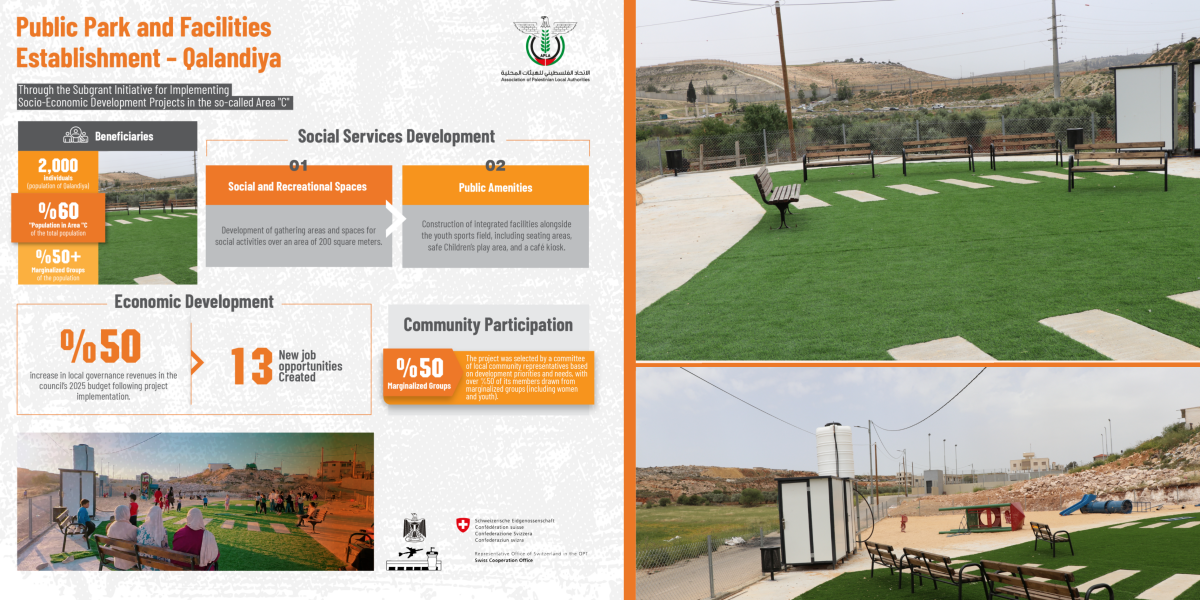 The project in Qalandiya was never meant as a definitive solution, but as a practical step within a longer effort led by the local council to confront the isolation imposed by the wall and checkpoints. It is a concrete attempt to secure public spaces that safeguard people’s dignity and strengthen their resilience. Above all, it stands as a reminder that development here is not a luxury, but a daily act of steadfastness—and that communities, even under constraint, can carve out new spaces for life.