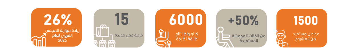 الأثر الاقتصادي تجلى أيضًا في زيادة بنسبة 26% في إيرادات المجلس لعام 2025، إضافة إلى توفير 15 فرصة عمل جديدة، وُجه جزء منها للفئات المهمشة من شباب ونساء، مما عزز المشاركة الاقتصادية محليًا.قيمة المشروع تكمن كذلك في الطريقة التي أُنجز بها. فقد اختير من خلال لجنة محلية ضمّت النساء والشباب بنسبة 27%، مع مشاركة متطوعين في التنفيذ والمتابعة، ليصبح نموذجًا للتخطيط التشاركي القائم على أولويات الناس.