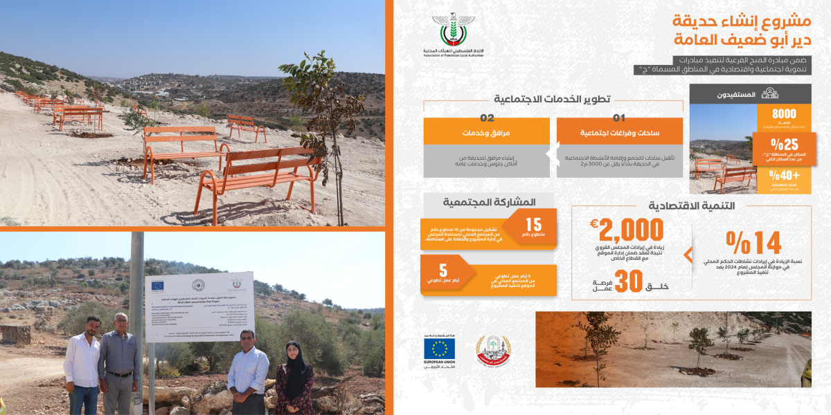 حديقة دير أبو ضعيف العامة وُلدت كفكرة بسيطة، لكنها نُفذت برؤية تنموية بعيدة المدى. فقد تحولت من مجرد مساحة للترفيه إلى أصل استثماري مُدار بشراكة ذكية بين المجلس القروي والقطاع الخاص، ما ضمن استدامتها المالية وحرر المجلس من عبء التكاليف التشغيلية. وبدل أن تكون الحديقة عبئًا على الموازنة، أصبحت رافدًا اقتصاديًا يعزز قدرة المجلس على تقديم خدمات جديدة وتنفيذ مبادرات تنموية أخرى.
